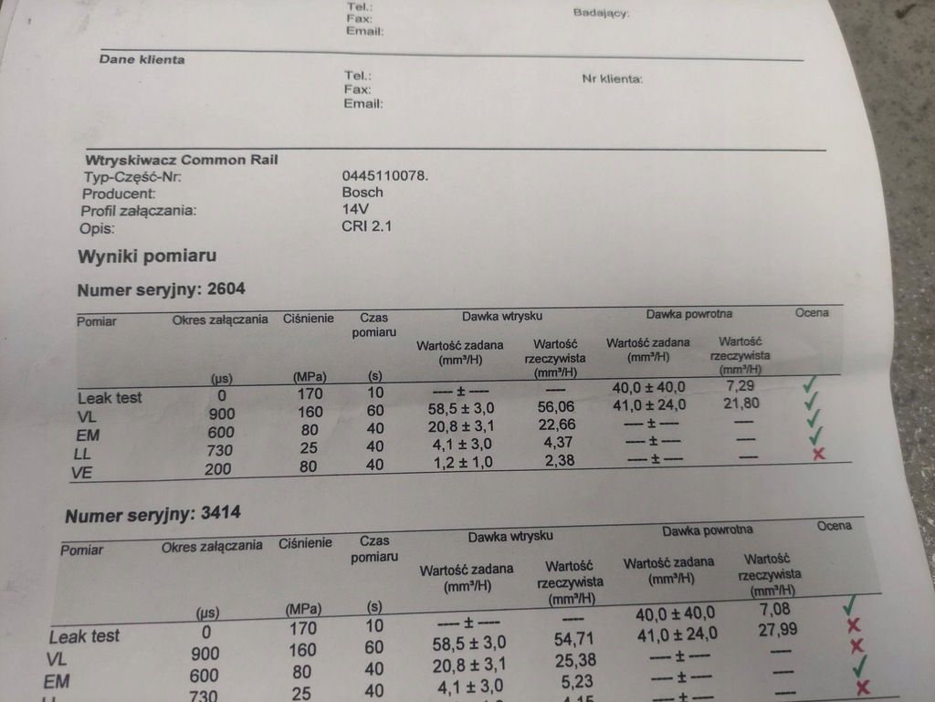WERKENDE INJECTOREN, GETEST (PRINT-OUTS BIJGEVOEGD)