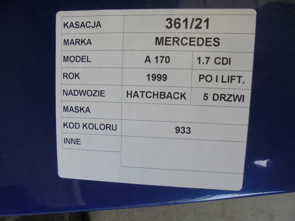 Motorkap Mercedes W168 1.7 CDI 933