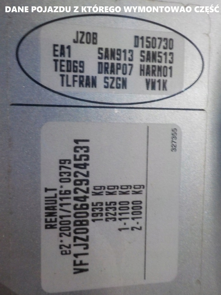 MEER INFORMATIE OVER VAN HET VOERTUIG WAARVAN HET ONDERDEEL WERD VERWIJDERD OP DE PLAAT IN DE LAATSTE FOTO.