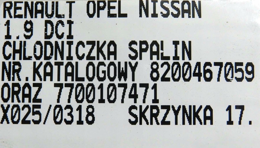 UITLAATKOELER RENAULT OPEL NISSAN 1.9 DCI