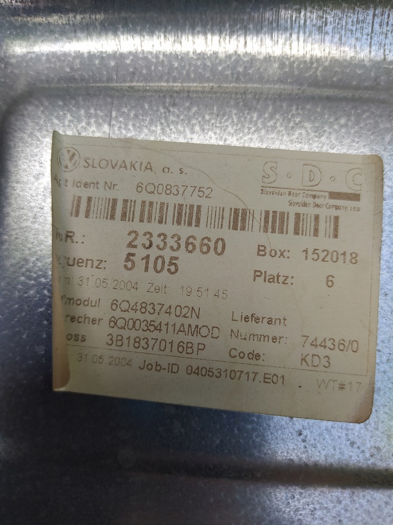 | Onderdeelnummer | 6Q4837756 |